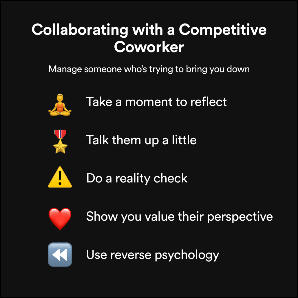 Dealing with a competitive coworker is tricky. Keeping these tactics top of mind will help you collaborate with them even when the going gets tough.