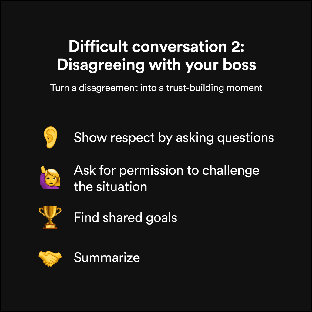When you have a different opinion, you want to be able to discuss it with your boss without things spiraling into a fight. So how do you say what matters to you, without personal conflict?