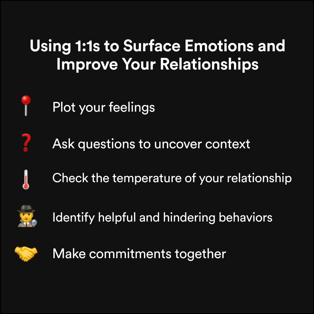 Don’t just check the box with 1:1s. Use them to understand your team members’ emotions and how they view their relationship with you.