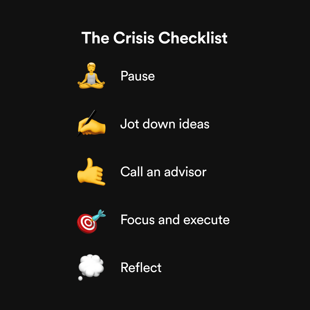 The Crisis Checklist is something you can fall back on. Let's look at the steps.